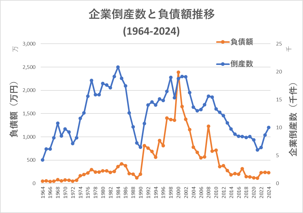 元データ:倒産件数・負債額推移 | 全国企業倒産状況 | 倒産・注目企業情報 | 東京商工リサーチ