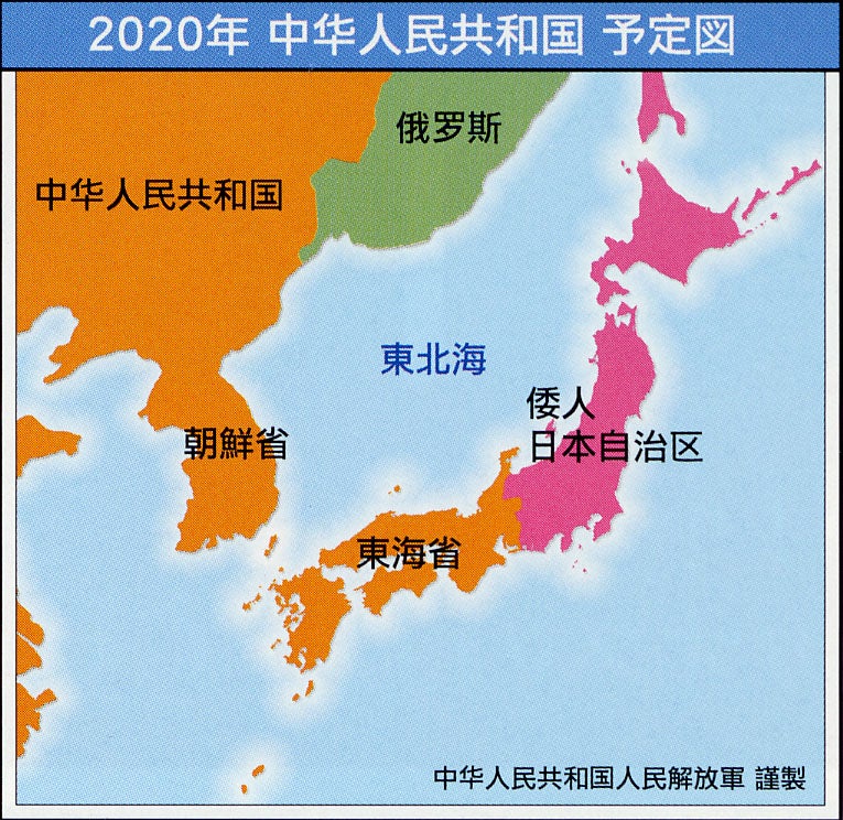 公明党と創価学会が「平和」を掲げて「日本の戦力不保持」を主張していたのは、中国共産党の意向だったのだ。中国共産党は、日米同盟を破壊し日本を中国の傘下に取り込む計画だったのだ。それも、「同盟国として」ではなく、「中国の一部として」である。自衛隊を戦力不保持から縮小化し、日本を無抵抗な国にした上で、中国の支配下に置こう、こういうことなのだ。下の図は、ネット上で出回っている「2050年の日本地図」という画像である。